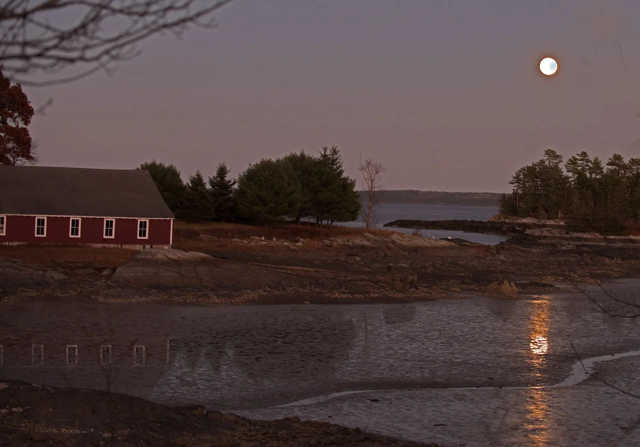 The gravitational pull and push of this close encounter caused low tides that nearly emptied the coves around Brooklin and Blue Hill during the evenings of the 13th and 14th.