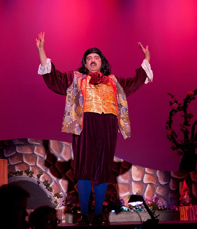 Most of the Society players have significant experience, but also have “day jobs” or are retired. For example, the plastic-faced Roland Dube masterfully plays Reginald Bunthorne, the “fleshy” and conniving “poet” at the center of Patience. Mr. Dube has been playing a wide variety of community theatre for 33 years, and also is a mathematics teacher in a Bangor elementary school.