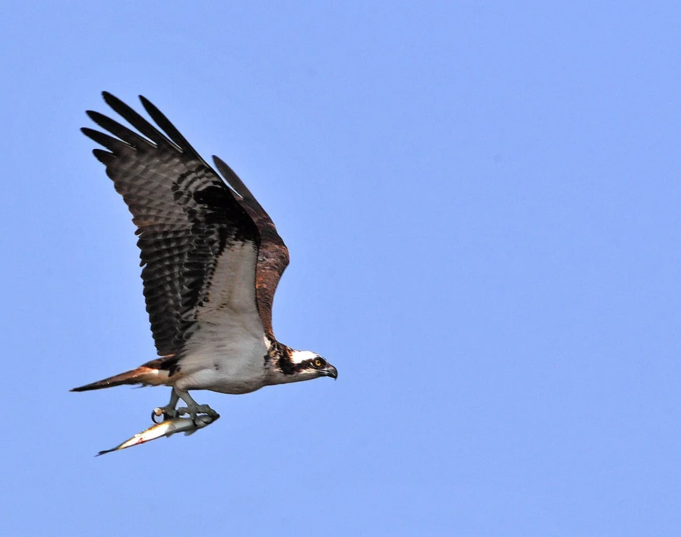 Ospreys also have barbed soles to grip their slippery prey and maneuver it in flight so that the fish’s head is pointed forward for better control and aerodynamics. (Brooklin, Maine)