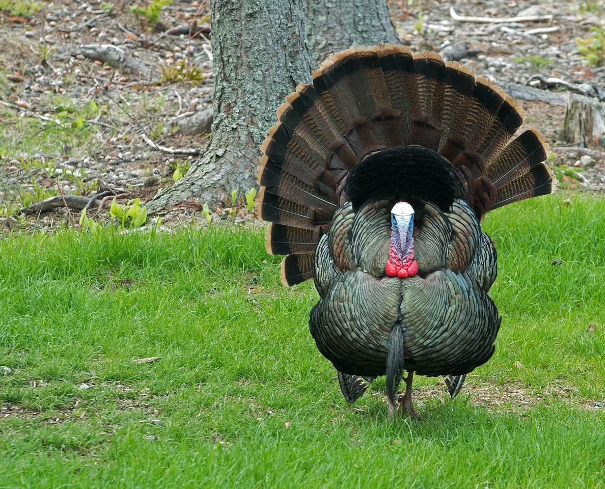 May also is the month when our resident male Wild Turkeys get into the act by recreating themselves as other-worldly creatures that puff up to twice their size and slowly strut to get female attention.