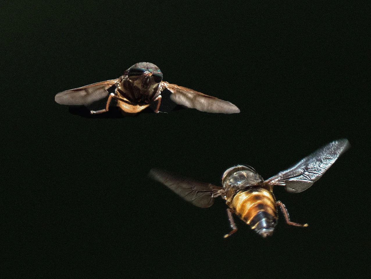 It’s about half an inch long, has only two functional wings (unlike bees, which have four), and hovers in one spot for 60 seconds or more. We think that it’s a species of Hover Fly, but are not certain if that is correct and, if so, which Hover Fly it might be.