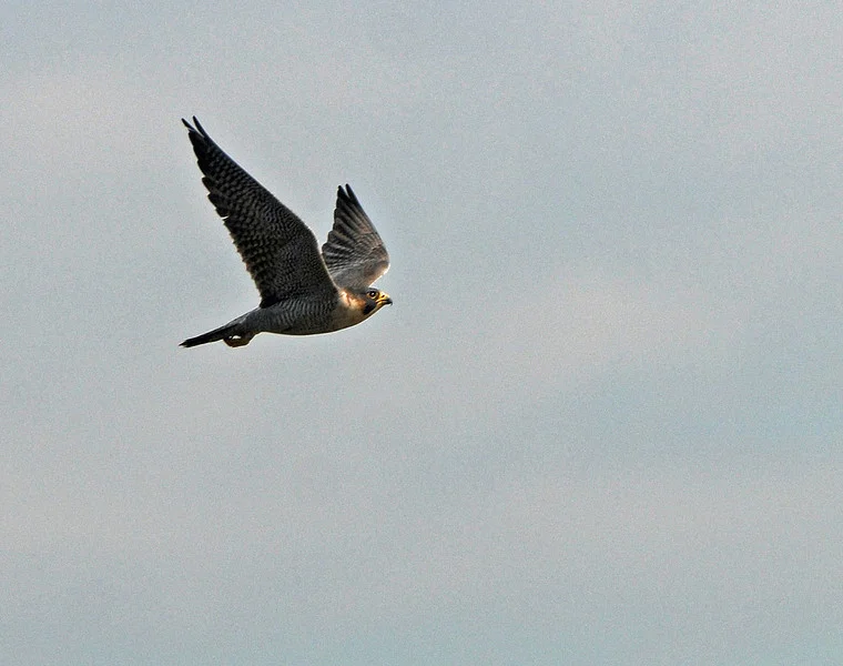 The sleek Peregrine Falcon arguably is the fastest bird in the world. It dives for prey at 200 miles per hour or more, often using its clenched foot to stun, kill, or break the wing of a duck or other medium-sized bird in flight.