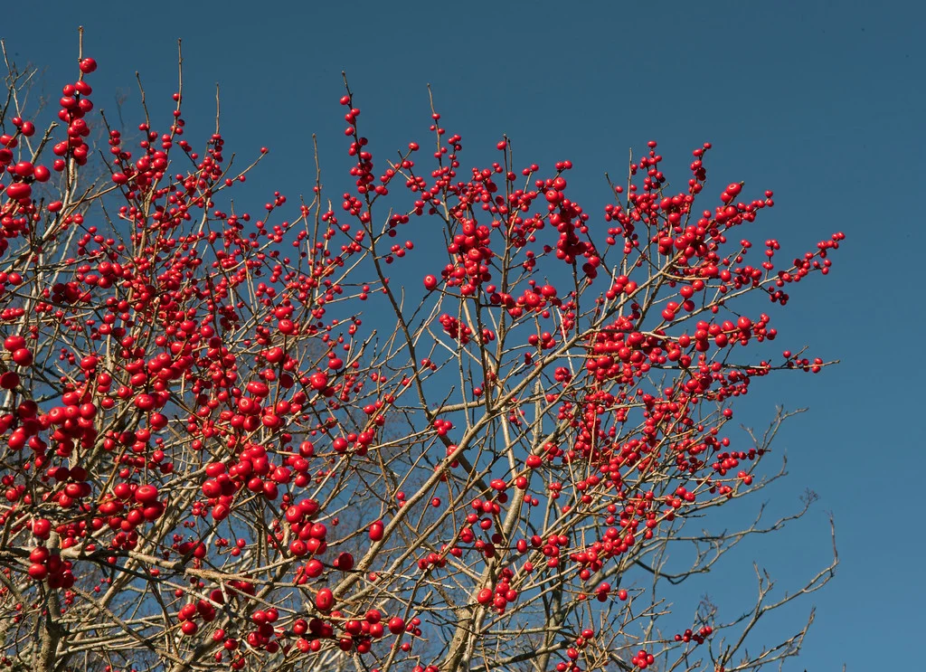 There are conflicting reports about this year’s appearance of Winterberries: Some have plentiful shrubs and others haven’t seen a single berry. We have a few on our plants. Local legend has it that bountiful Winterberries mean a tough winter and few mean a mild one. These little red berries are a major ingredient in nature’s winter survival kit for 49 species of birds, deer, raccoons, and white-footed mice. The wildlife tend to visit this deciduous holly bush later in the winter because its berries are less nutritious than other winter foods. In case you haven’t seen any this year, here are images from last year’s bumper crop.