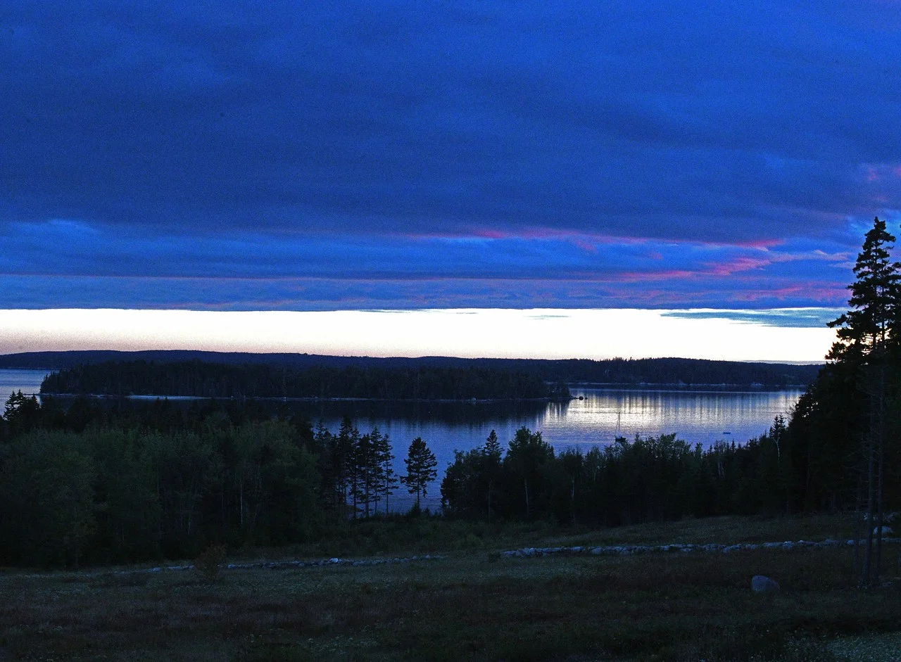 Shortly after that image was taken, high winds, rain, hail, and lightning raked Naskeag Peninsula as the storm quickly passed over us. Our house was struck and the lights flickered, but didn’t go out. It was over quickly and, by evening, Great Cove was serene, as you can see here: