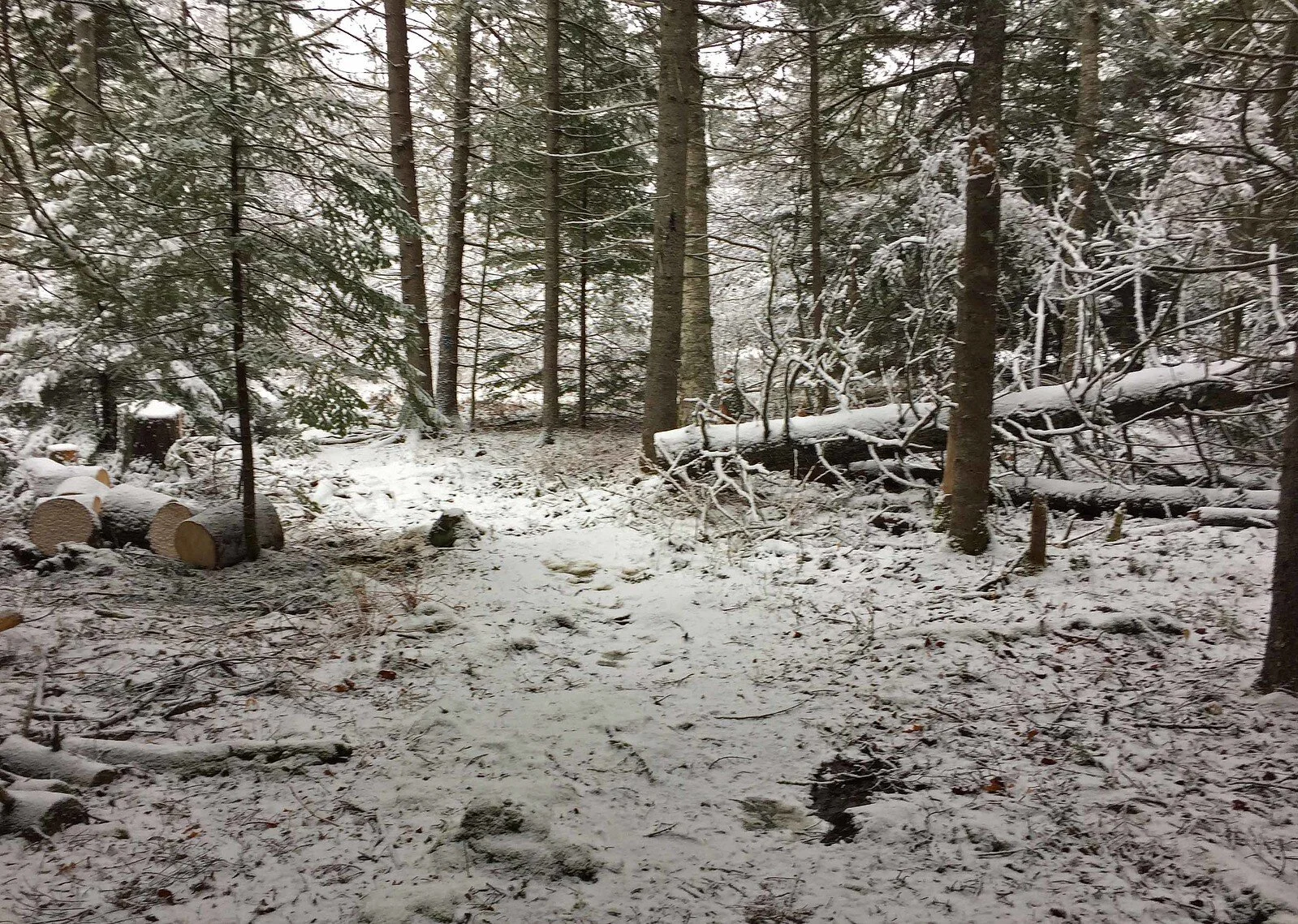 Here’s an image of the opened trail yesterday as the snow started falling: