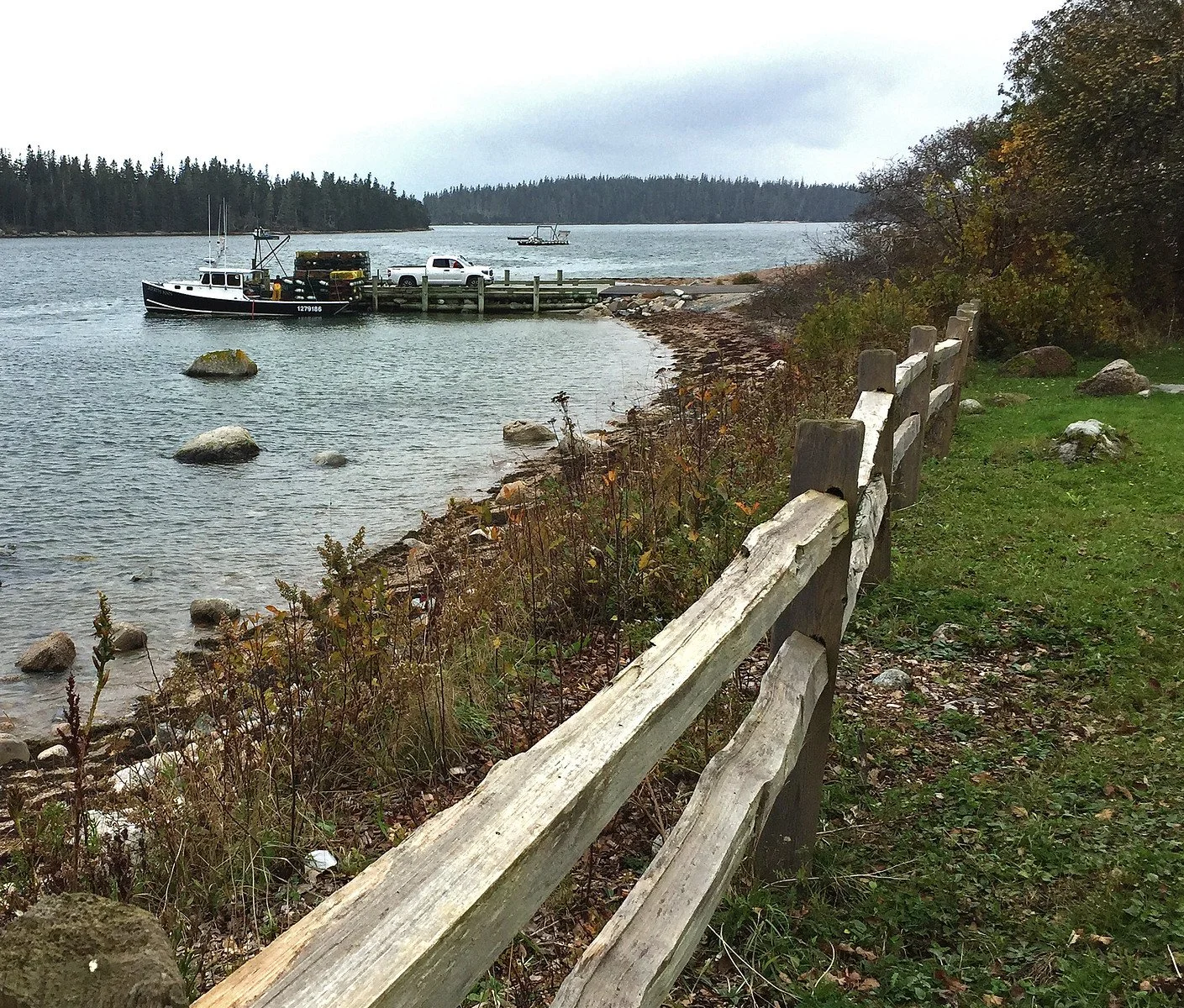 Here you see traps being off-loaded from Judith Ann in Naskeag Harbor during the misty aftermath of a severe thunder and lightning storm yesterday. (Images taken in Brooklin, Maine, on October 22, 2021.)