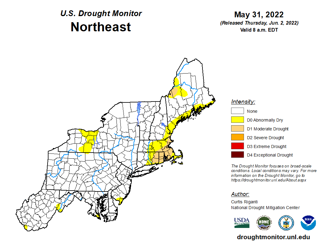 The latest data from the U.S. Drought Monitor, released this morning, show abnormal dryness and even moderate drought up the entire New England coast as well as in the usual southwestern Maine pocket: