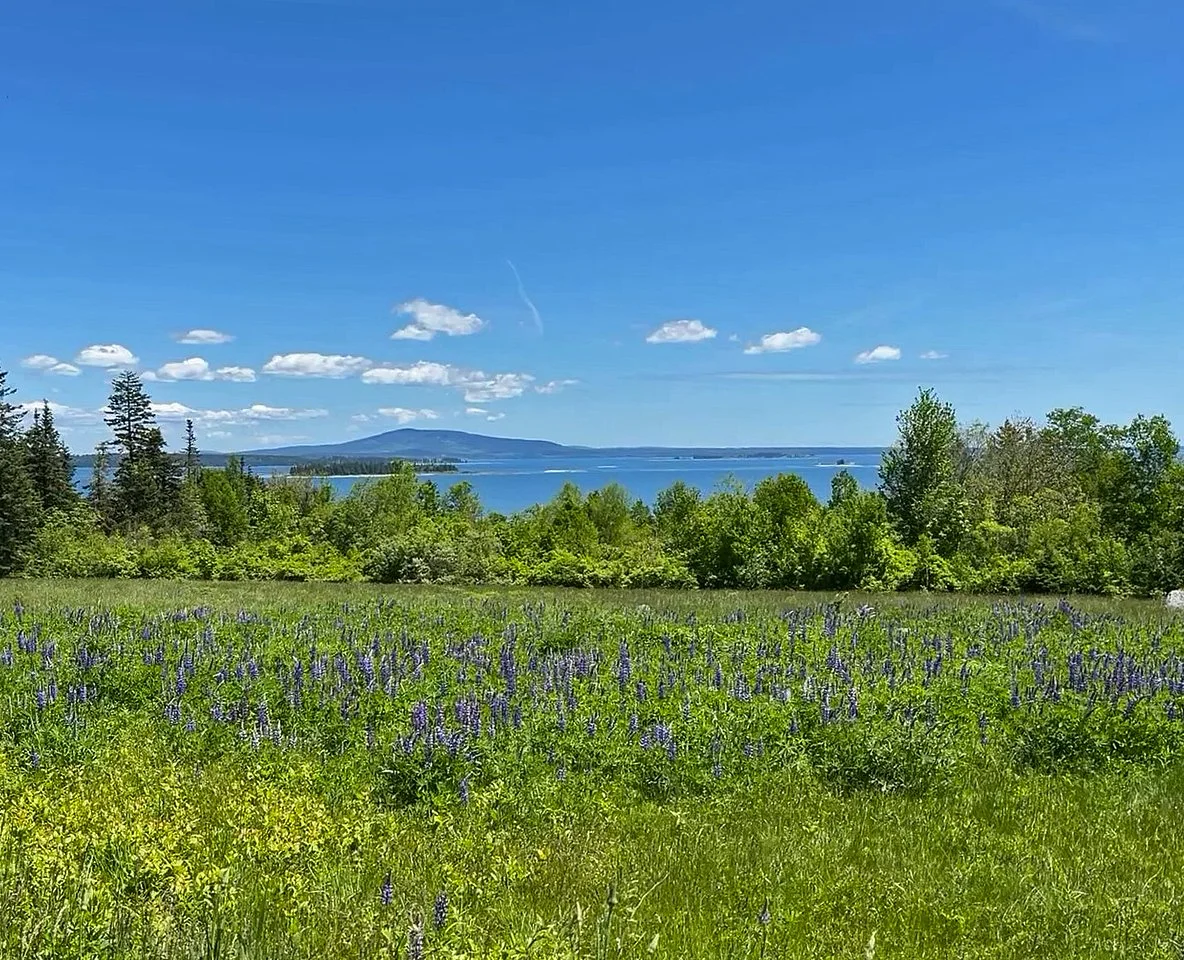 Hilda reportedly scattered Lupine seeds fanatically in Maine during her extensive travels as a summer resident here. Among other ways, she apparently did so through the windows of moving cars, while striding our fields, and in walking city blocks where there were patches of greenery or dirt.