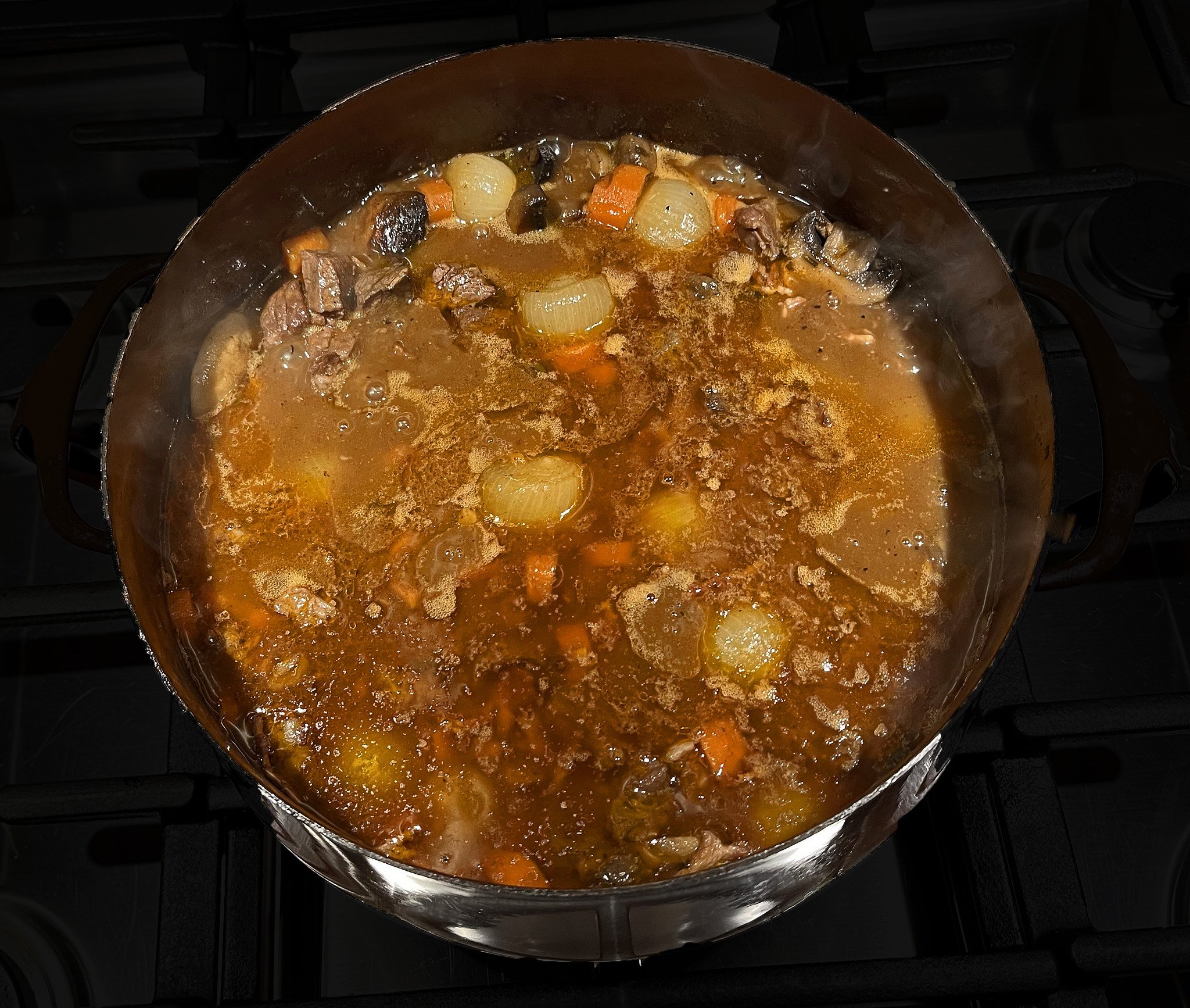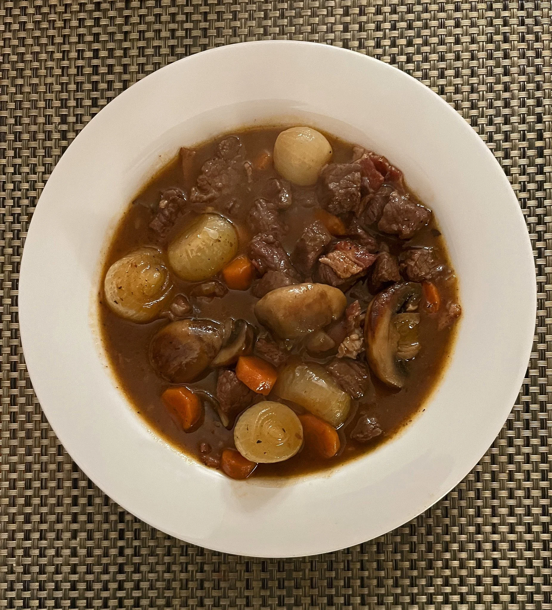 Last night, the birthday codgers were served a wonderful meal and wine by their personal chef, sommelier and flower provider, the talented Madame Jessica Dentzer (aka Julia [our] Child). A magnificent boeuf Bourguignon was well-accompanied by a bold Orin Swift Palermo cabernet sauvignon: