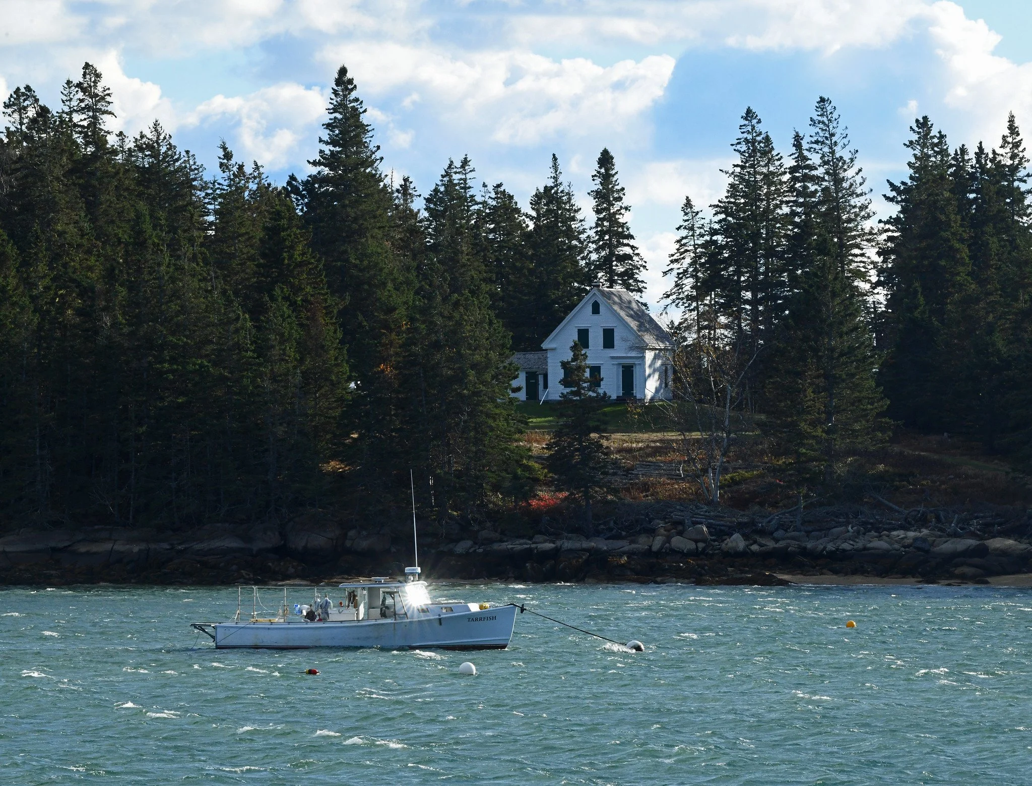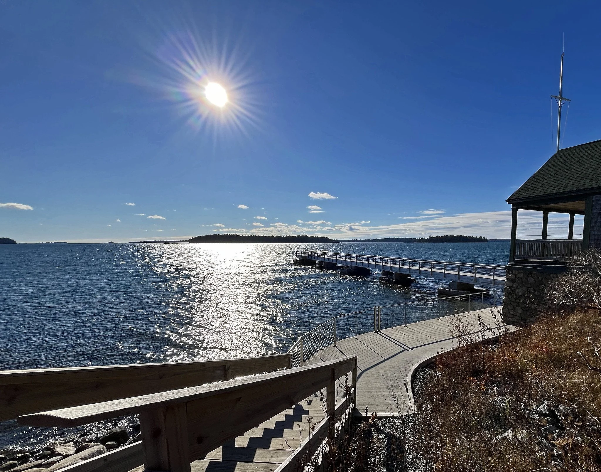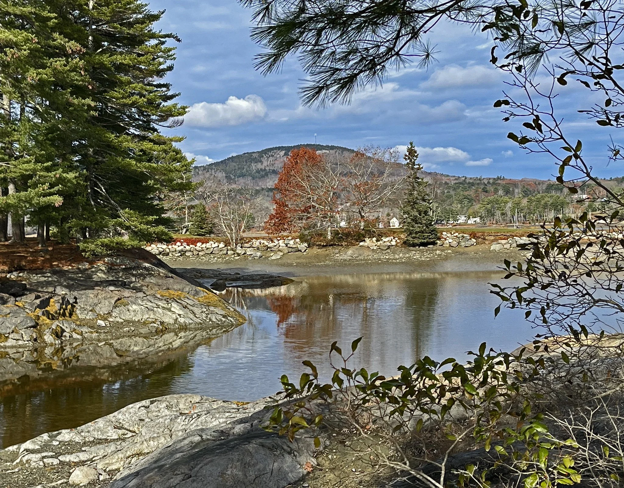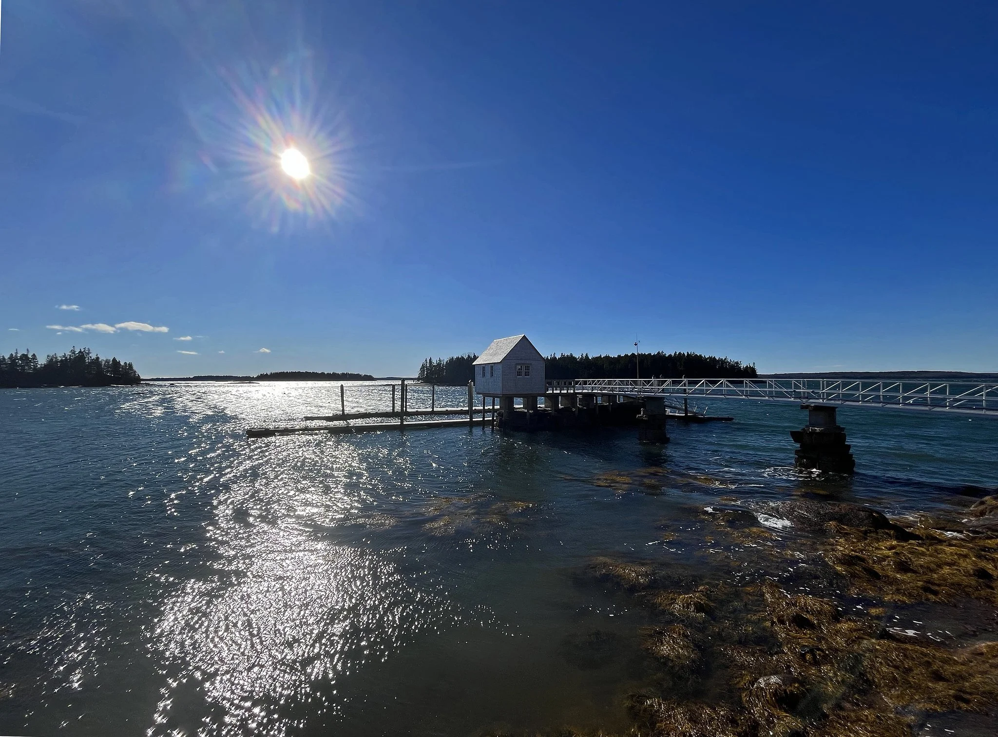 As usual, we’ll start with images of the four iconic scenes that we monitor monthly for you: The Harbor Island summer house overlooking Naskeag Harbor; the western mountains on Mount Desert Island (in sun and fog this month); the old red boathouse at Conary Cove, and the near-mountain called Blue Hill looming above Blue Hill Bay: