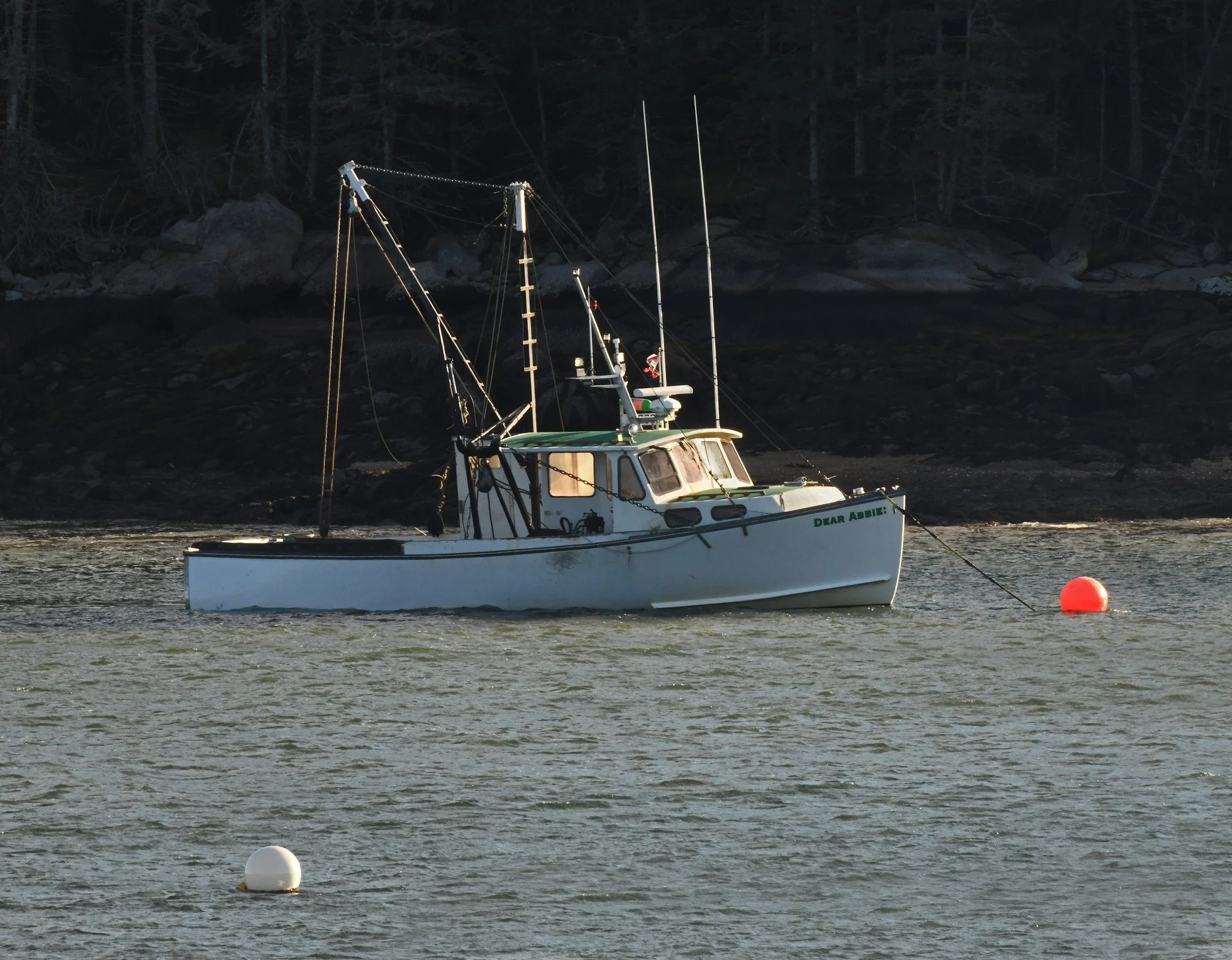 Above, you see Fishing Vessel TARRFISH rigged for scallop-dragging, with a mast, boom, winch, and “drag” (a pursenet dredge that scoops scallops up from the sea bottom). The boat’s owner, David Tarr, also dives for scallops. Below, you’ll see FV DEAR ABBIE: also newly rigged for scalloping.