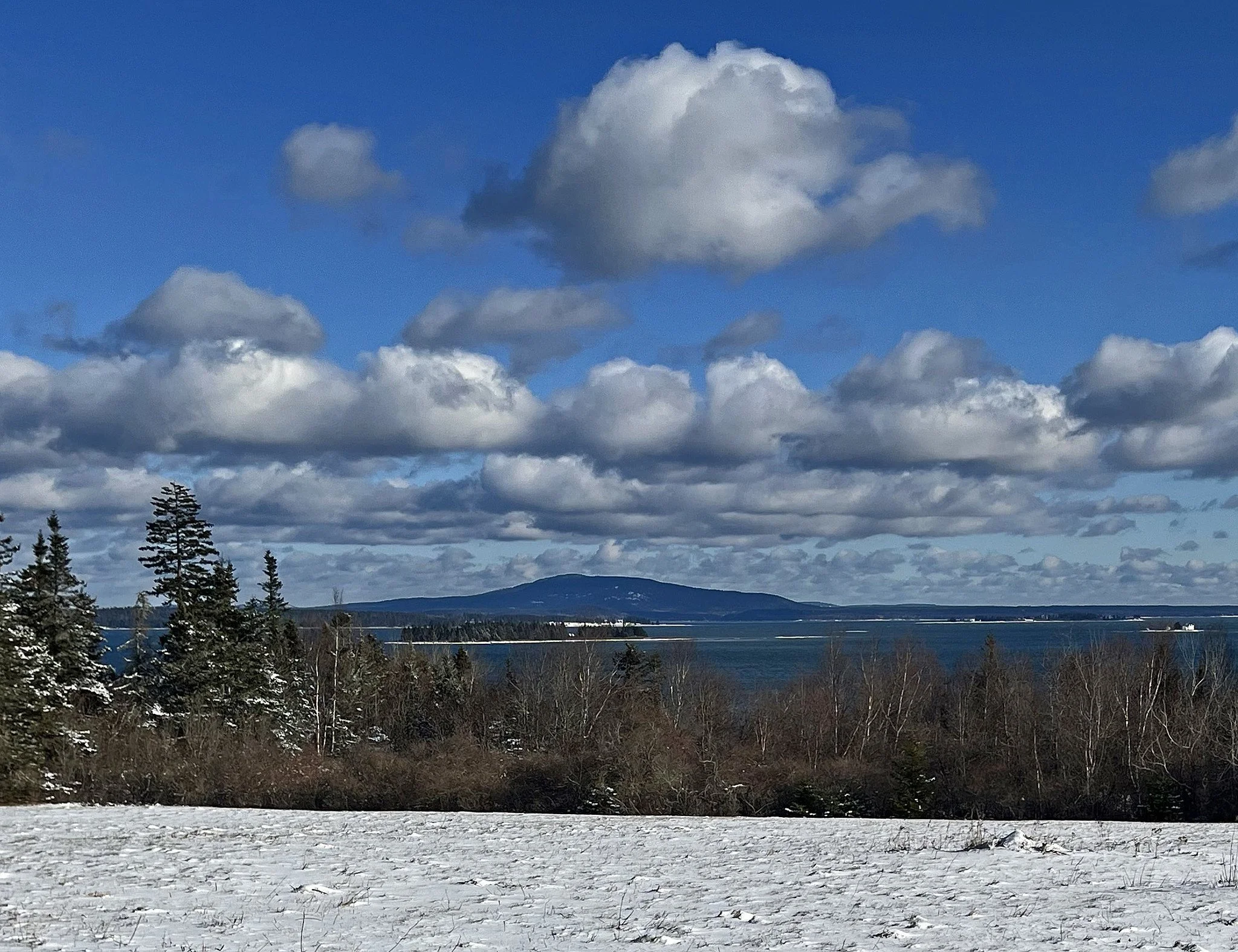 As usual, we include Postcards of the four iconic scenes that we’ve been monitoring for you and posterity: the view of Mount Desert Island’s western mountains from Brooklin’s Amen Ridge; the summer house overlooking Brooklin’s Naskeag Harbor; the near-mountain called Blue Hill in the town of the same name, and the old boathouse in Blue Hill’s Conary Cove: