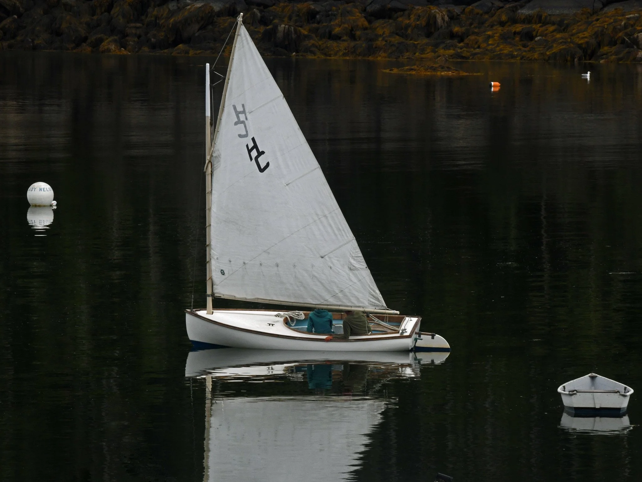 (Images taken in Brooklin, Maine, on August 20, 2025.) Anticipating Questions: My guess is that the boat is a 14-foot fiberglass Handy Cat (āHCā), a Merle Hallett design.