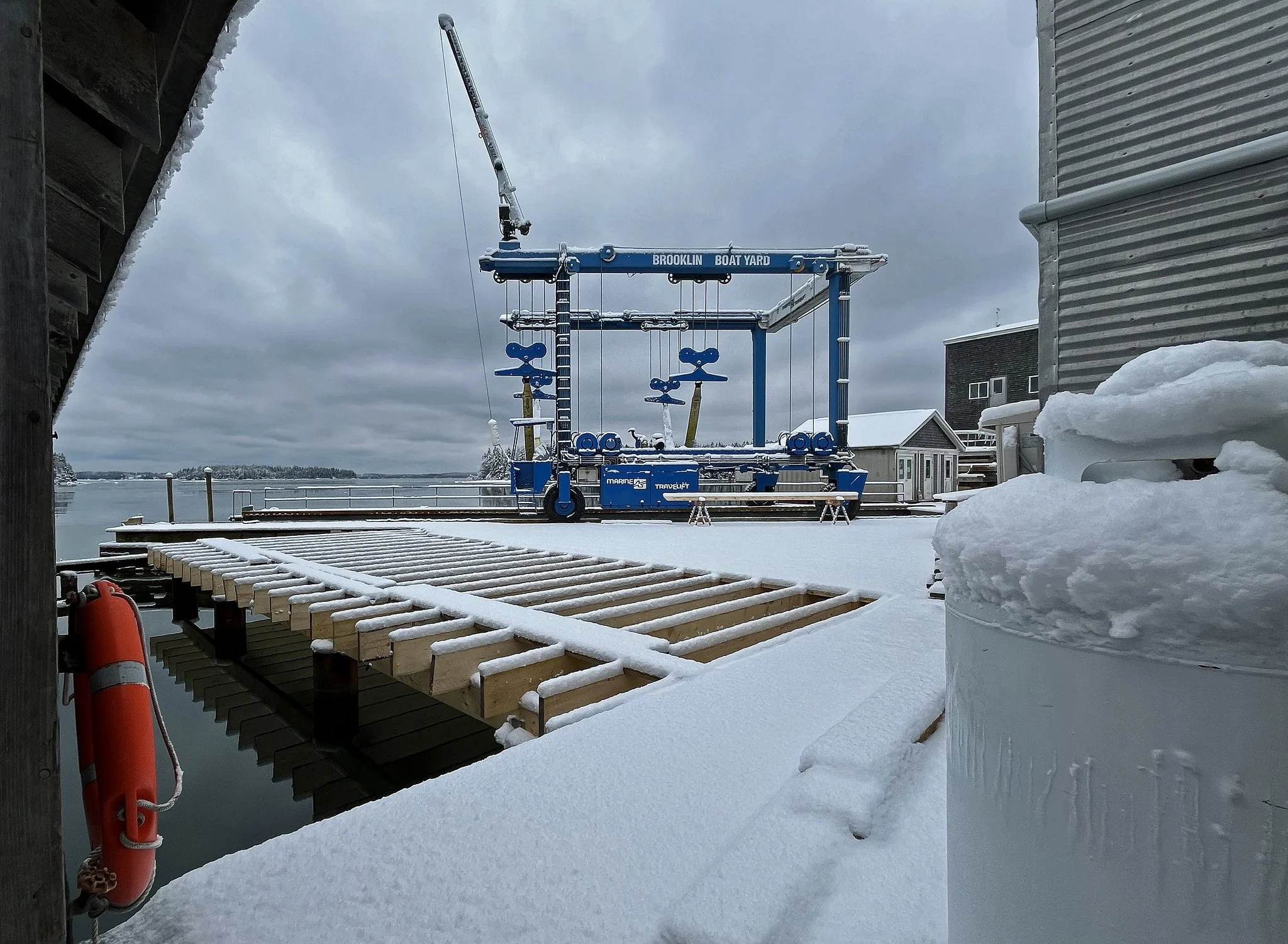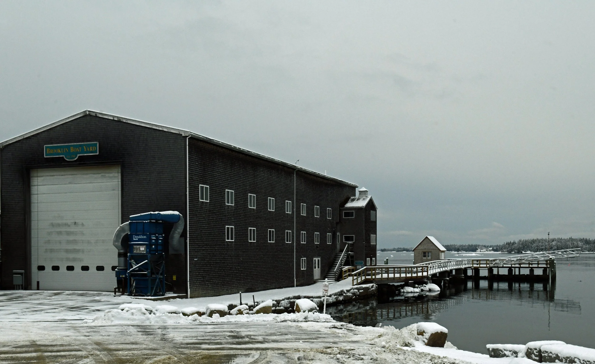 A short distance down Reach Road, the renowned Brooklin Boat Yard at Center Harbor also was closed over the weekend. Old, uninhabited seaside boat yards have their own good spirits, especially with fine snow drifting down: