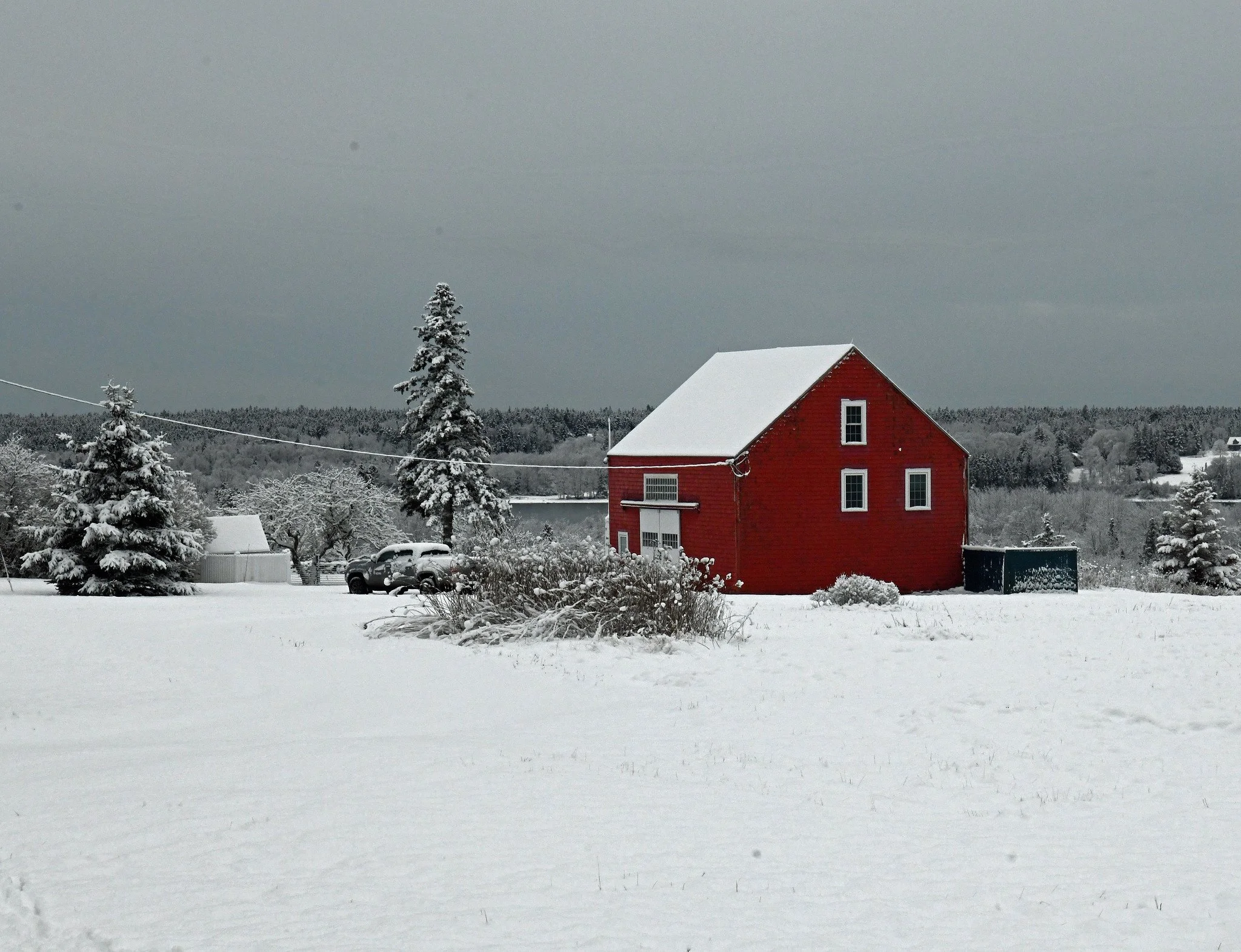 Interesting structures, artifacts and flora become more interesting after a good snowfall, especially those that have a brilliant color to glow through the monochromatics of a snowfall: