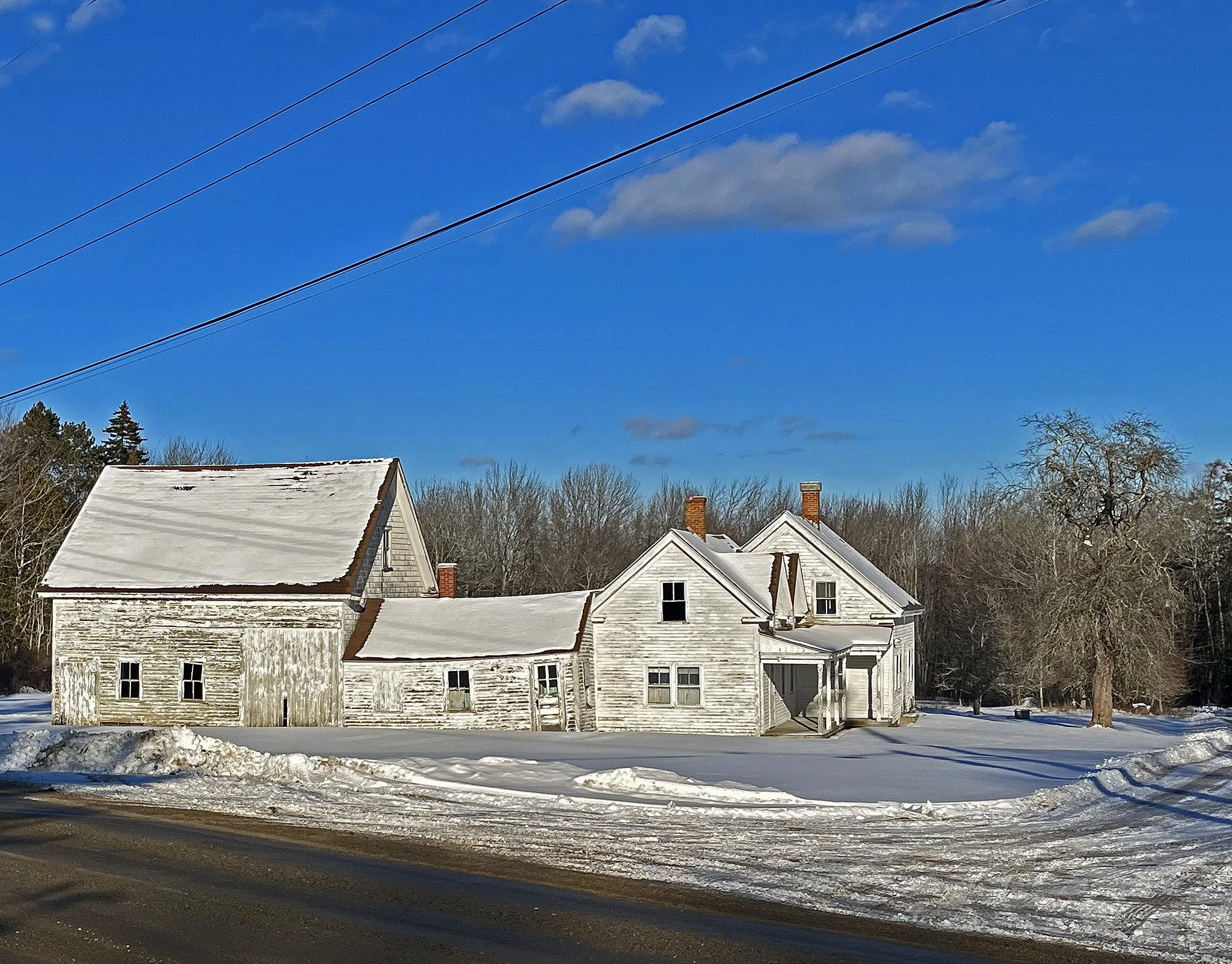 As for sadmarks, below you’ll see a virtually abandoned New England Connected Farmstead in Brooklin. It reportedly was built by Erastus Candage for his wife Mattie, likely in the late 1800s or early 1900s. It eventually housed a post office and became a focal point for community life and a subject for E.B. White to write about when he lived nearby.