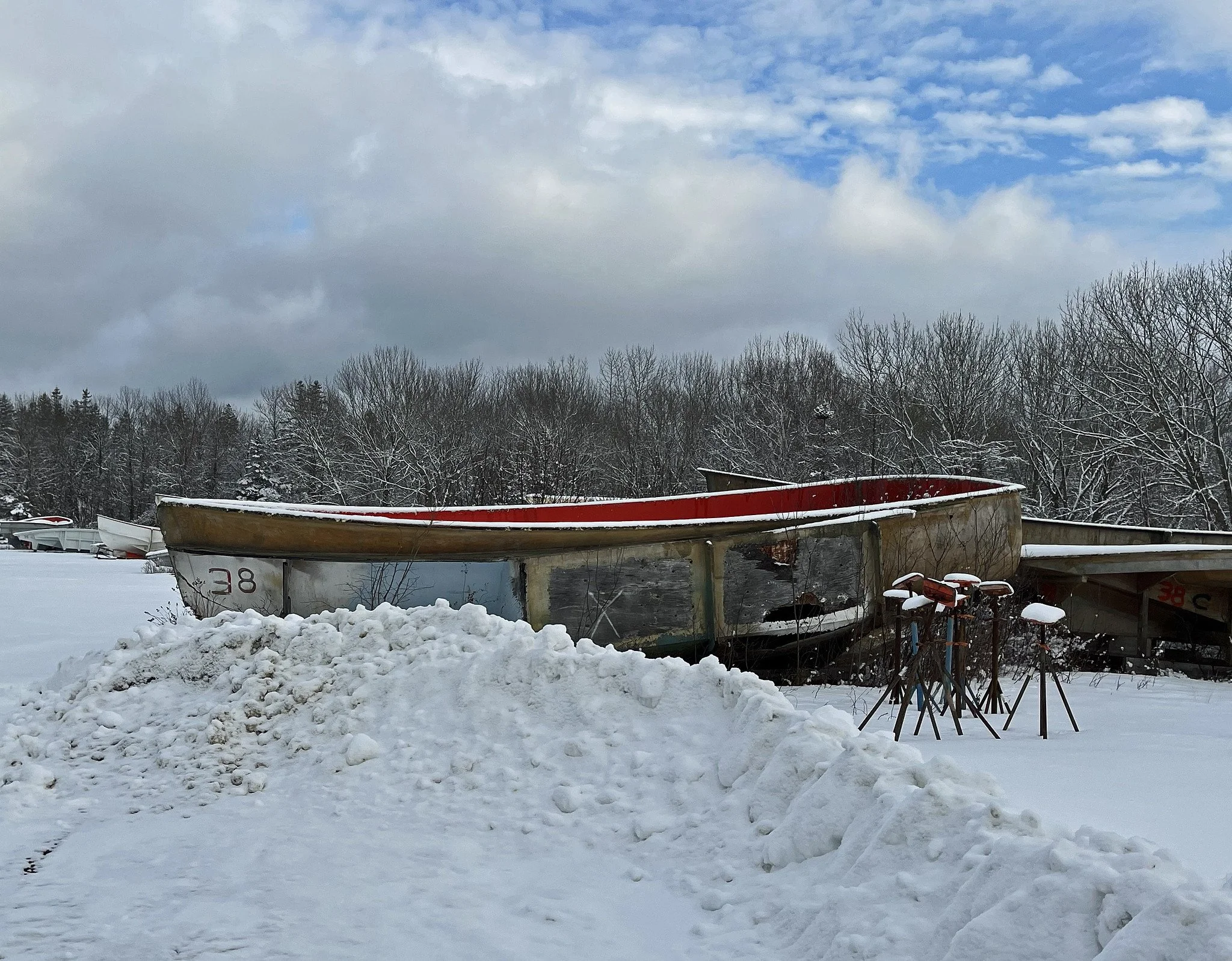 Continuing with our Fantastic February Snowfall series,above you see ALL-IN; she remains all in the waters of Naskeag Harbor. Below, you’ll see SHERRY-ANNE II and two friends who are not all in the water, but are “on the hard” at the Atlantic Boat Company: