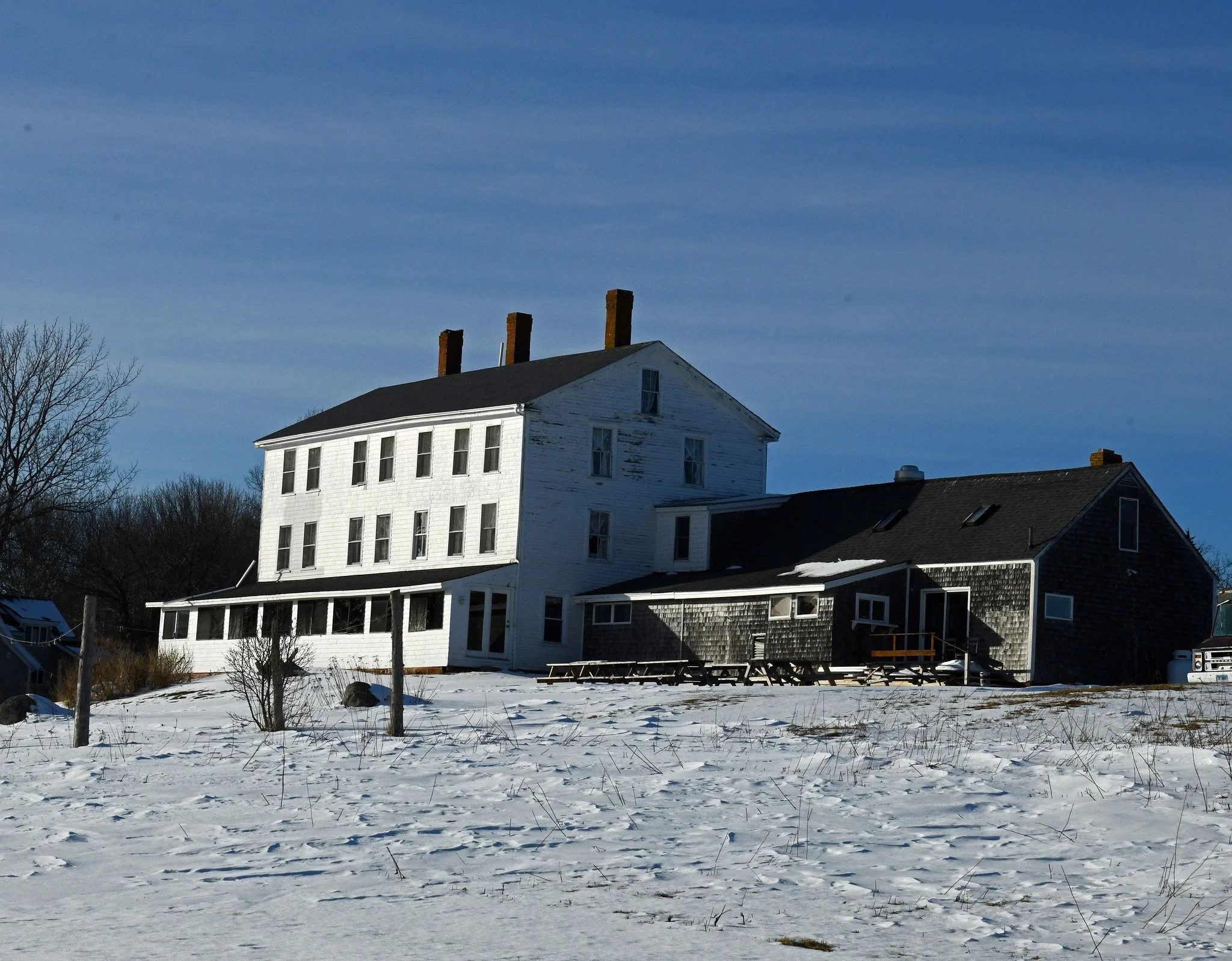 Here’s “The Lookout,” still keeping watch yesterday over local bays and the Atlantic ocean beyond. It’s perhaps Brooklin’s most historic structure, with original sections that have sheltered people since about 1760.