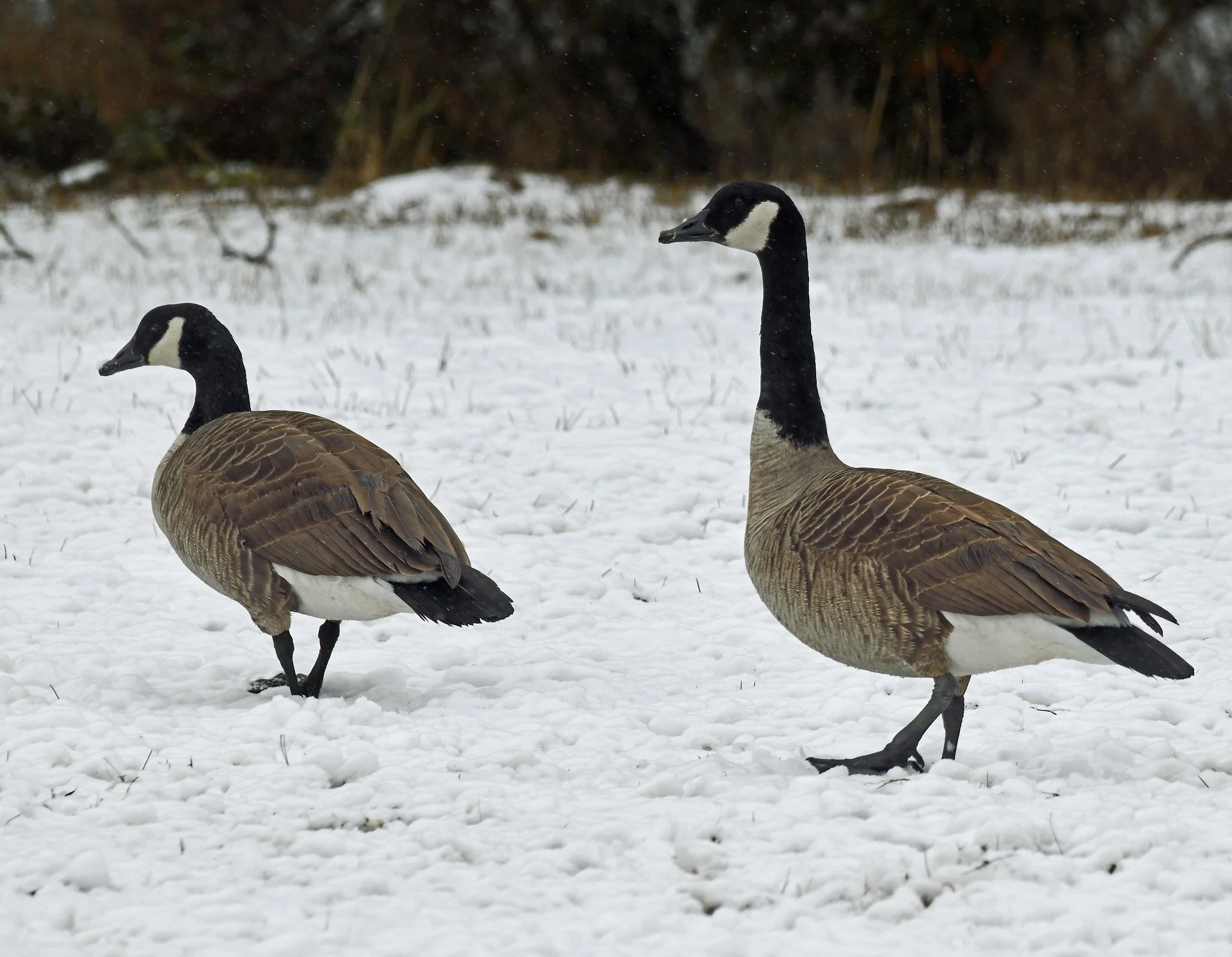 These masked characters slipped over our northern borders under cover of another snowfall yesterday and the only ICE in sight was on the ground. Canada geese have been coming south for at least two weeks.