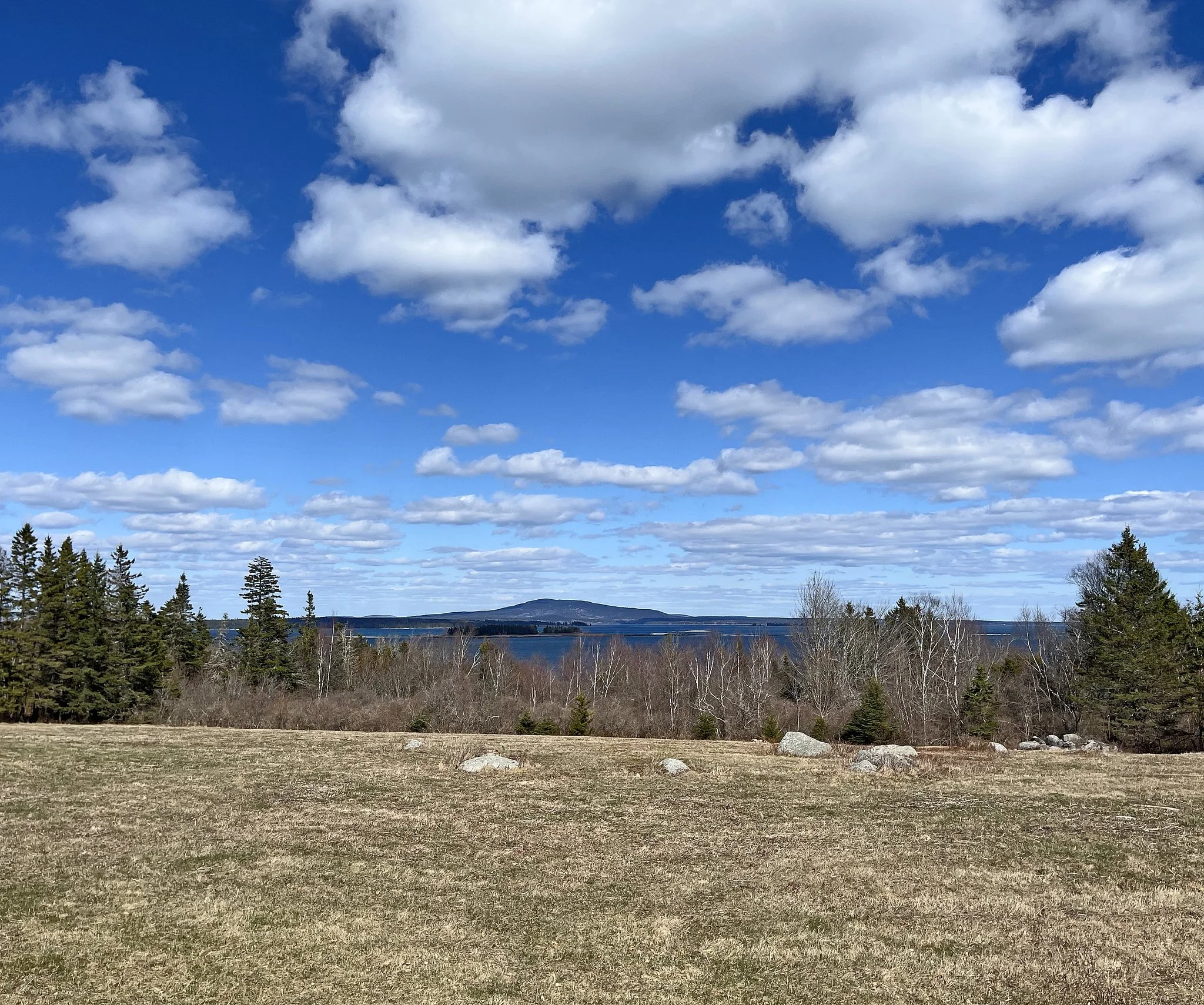 Above, you see stratocumulus clouds on parade yesterday above the near mountain called Blue Hill. Below, you’ll see that the parade began over the Atlantic Ocean and also passed in review of the western mountains of Mount Desert Island: