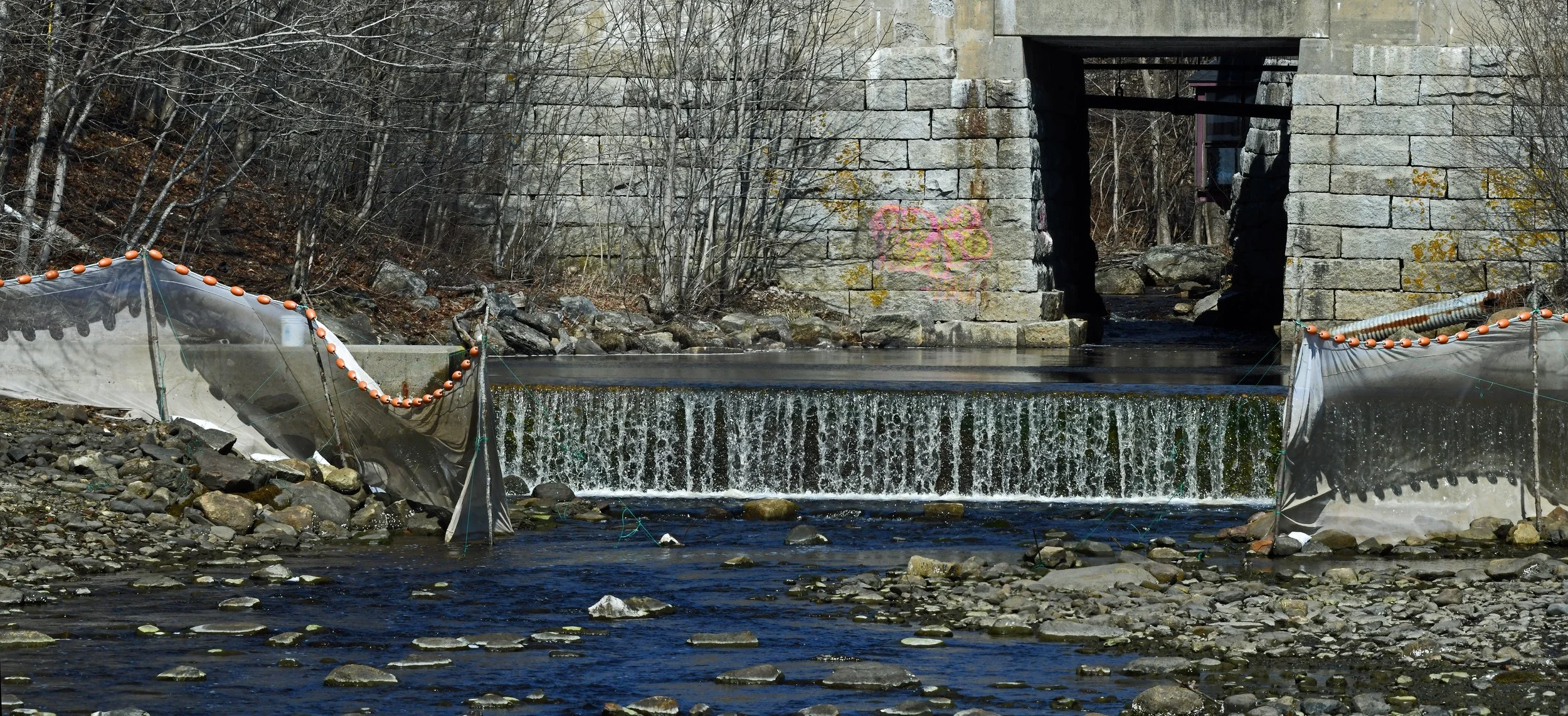Below you’ll see Fyke nets in Blue Hill’s Mill Stream. At high tide, they’ll try to capture migrating young American eels known as glass eels or sometimes as elvers. Most of them are sold into Asian markets, where they are farmed to maturity and then sold as delicacies.