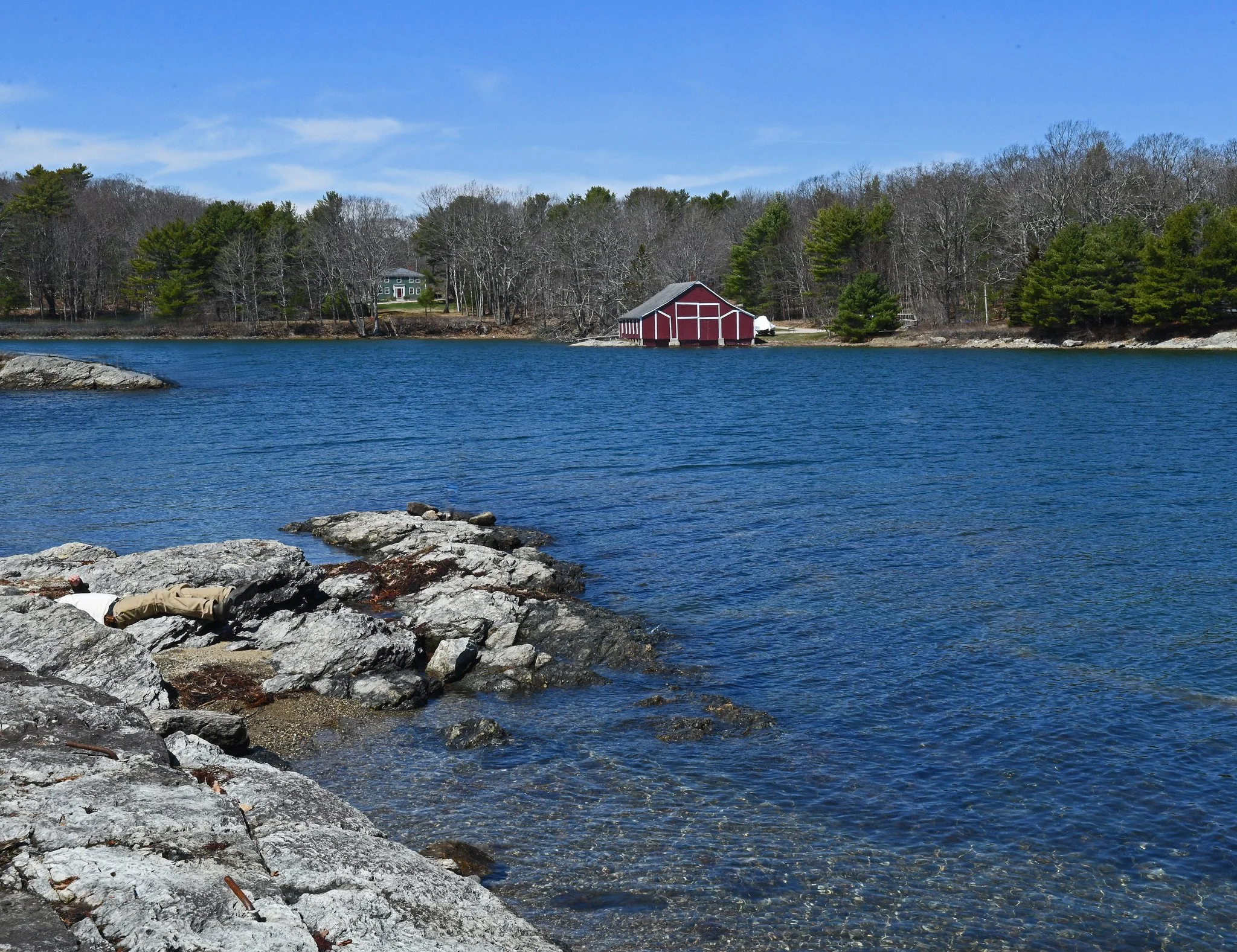 That is, we have a body here in this enlarged image, as you may have noticed. I didn’t see it with unaided eyes, until after Barbara said, “Did you see something move in those rocks there?” Something unusual had moved and a long lens revealed it to be – a hand! Unbeknownst to us, someone apparently was sunbathing within a crevice of the nicely-warmed-up granite ledges.