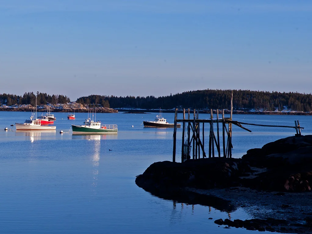 Lobster boats are maneuvered slowly into the cove at high tide; smaller craft speedily cleave low tide, sending tremors through calm waters.