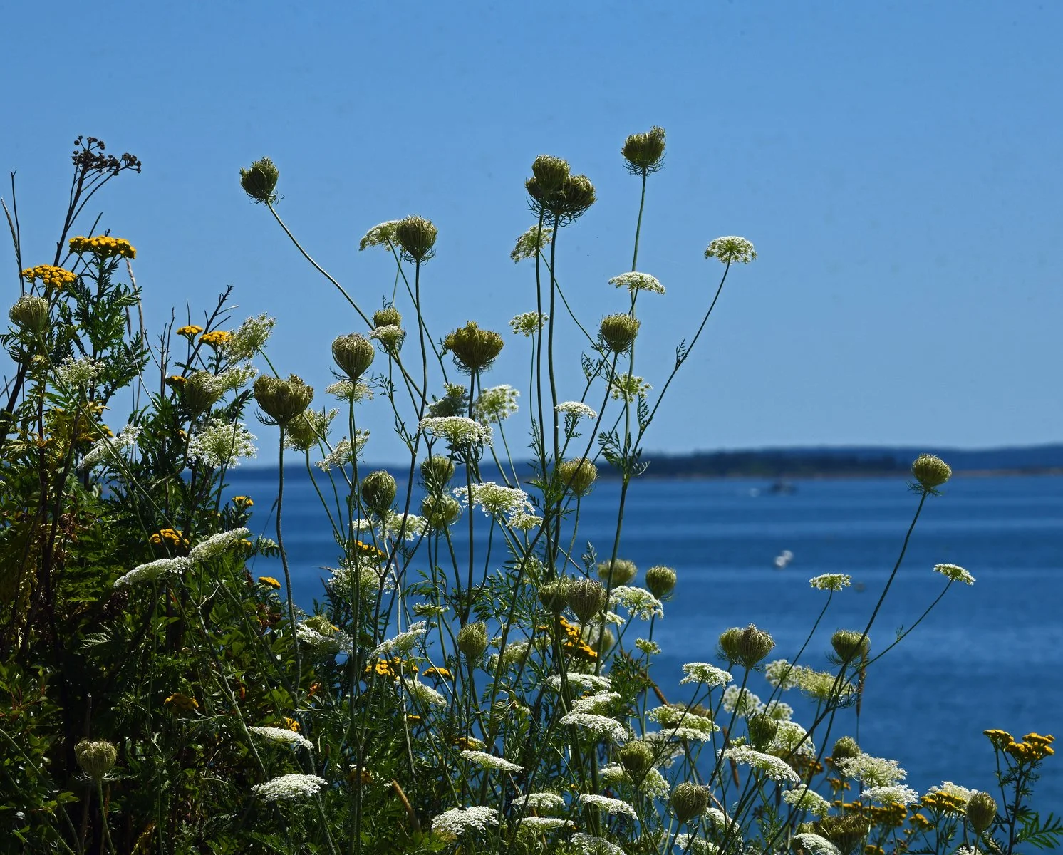 Nonetheless, as you see above, on the coast we usually have cooling breezes that sooth us and make the high summer Queen Anne’s Lace and Tansy perform ballets despite the heat.