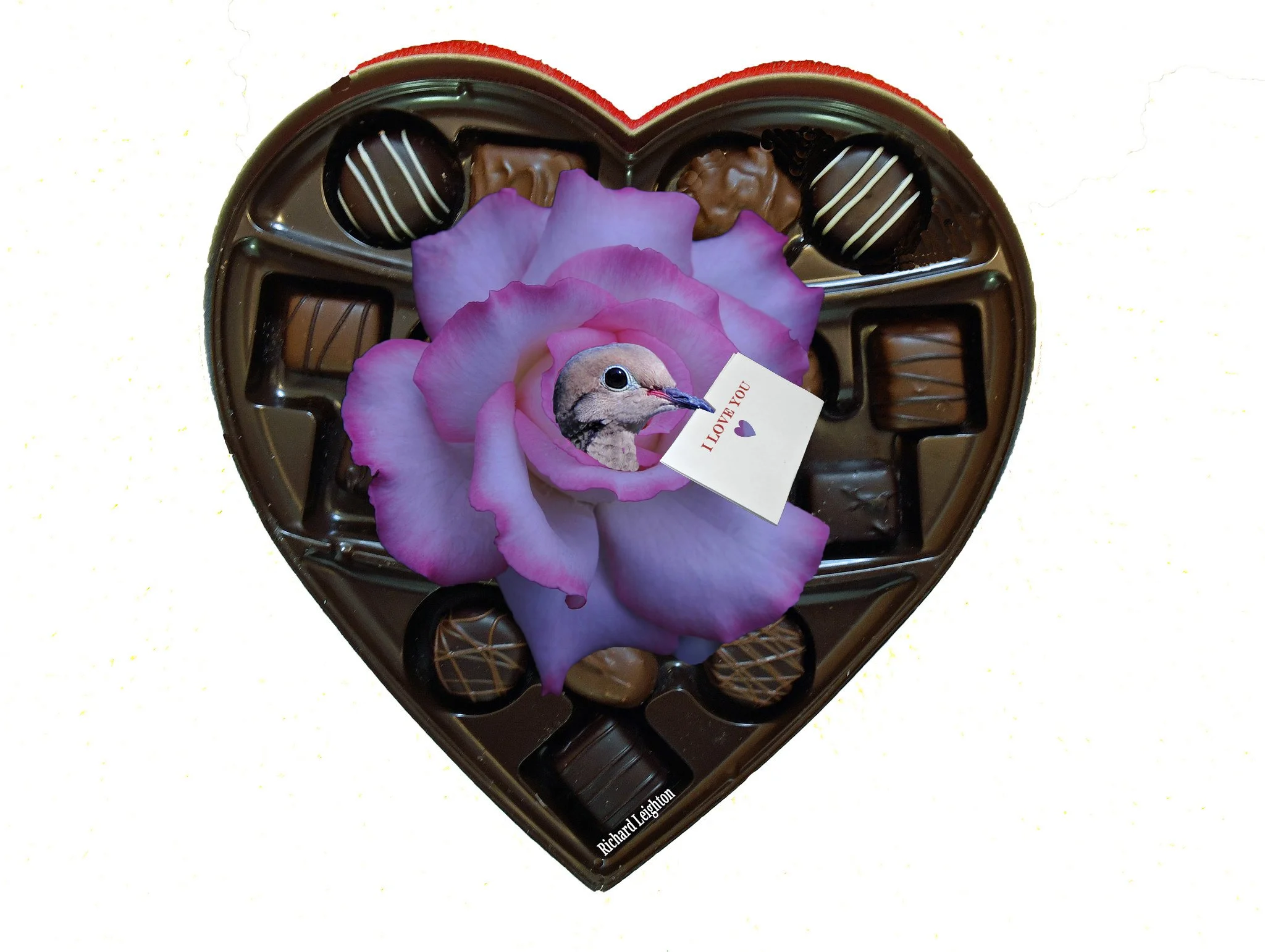 Let’s start with those aforementioned love birds, one of which appears in the accompanying composite photo. There are reports of people expressing their love by gifting live mourning doves, the American cousins of European turtle doves. (These people probably don’t know that such gifts are illegal in the United States, but I digress.)